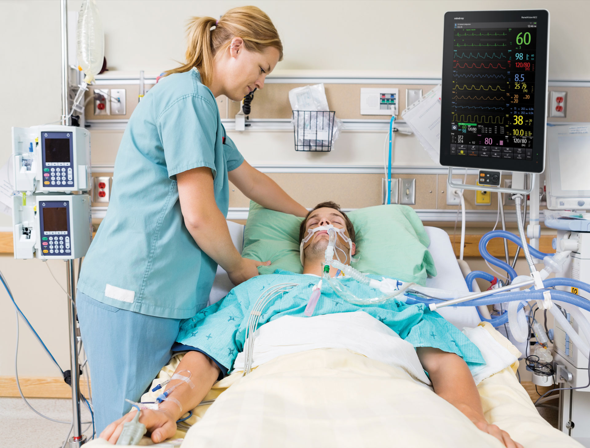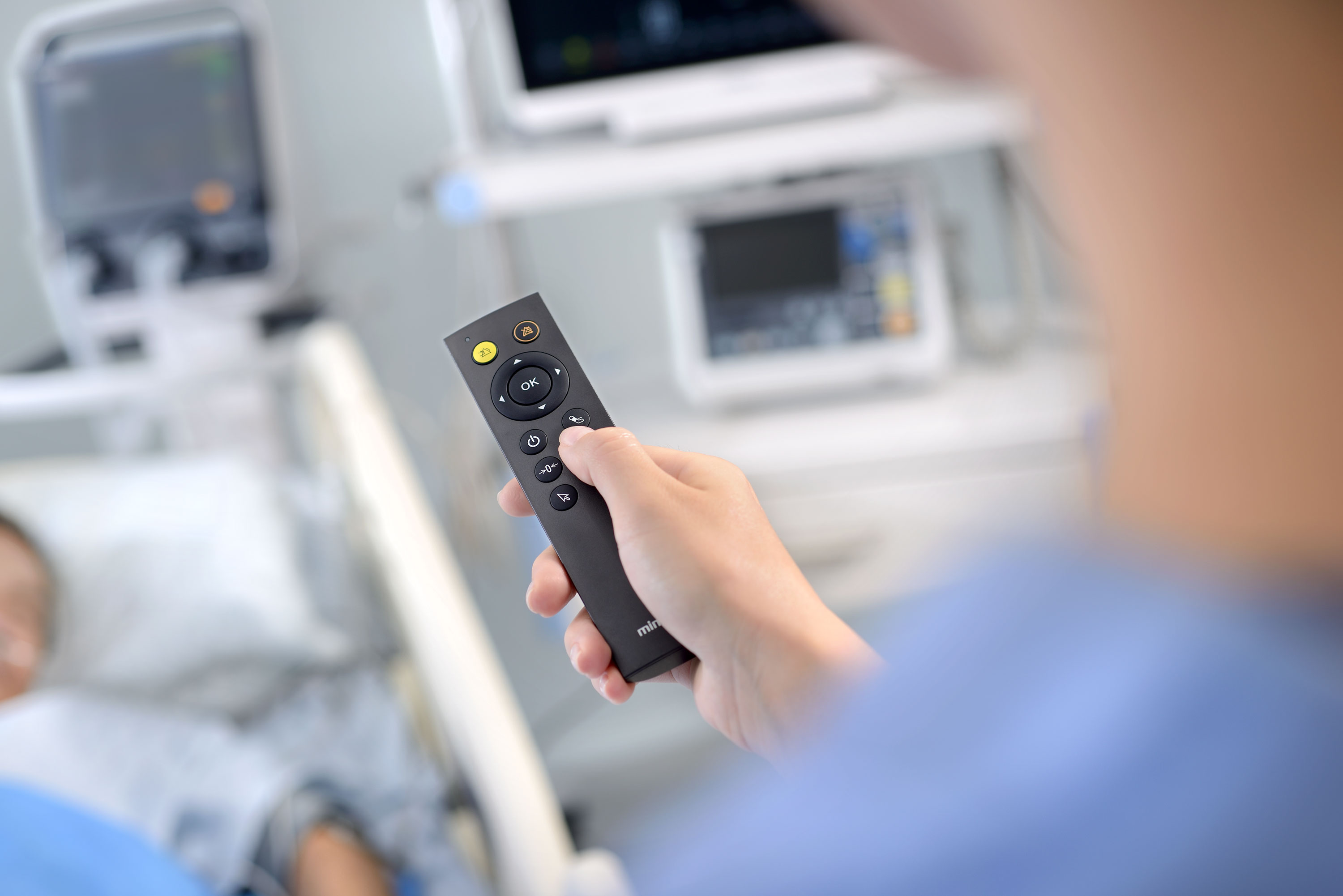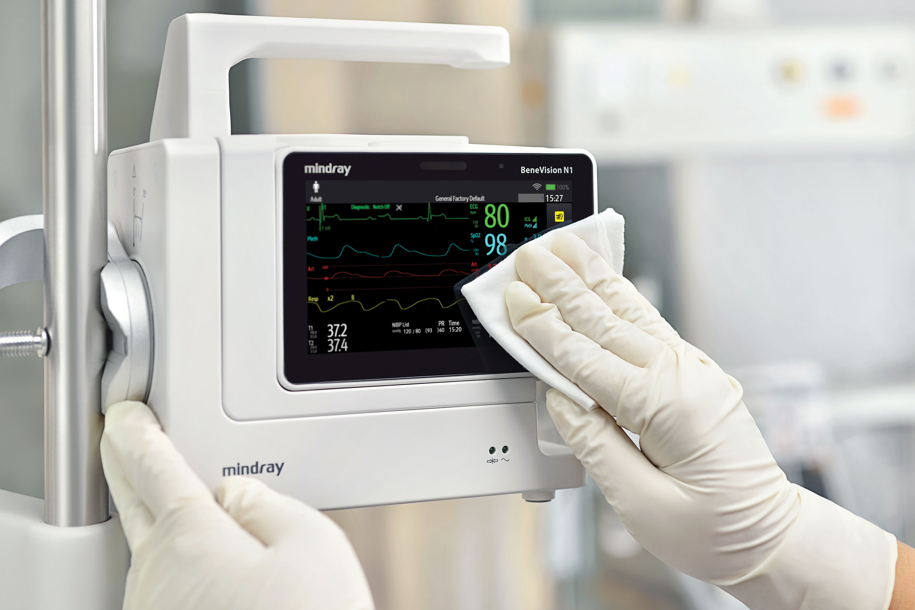 Patient rooms are crowded with multiple devices in use, limiting the clinician's ability to easily view and access bedside monitor